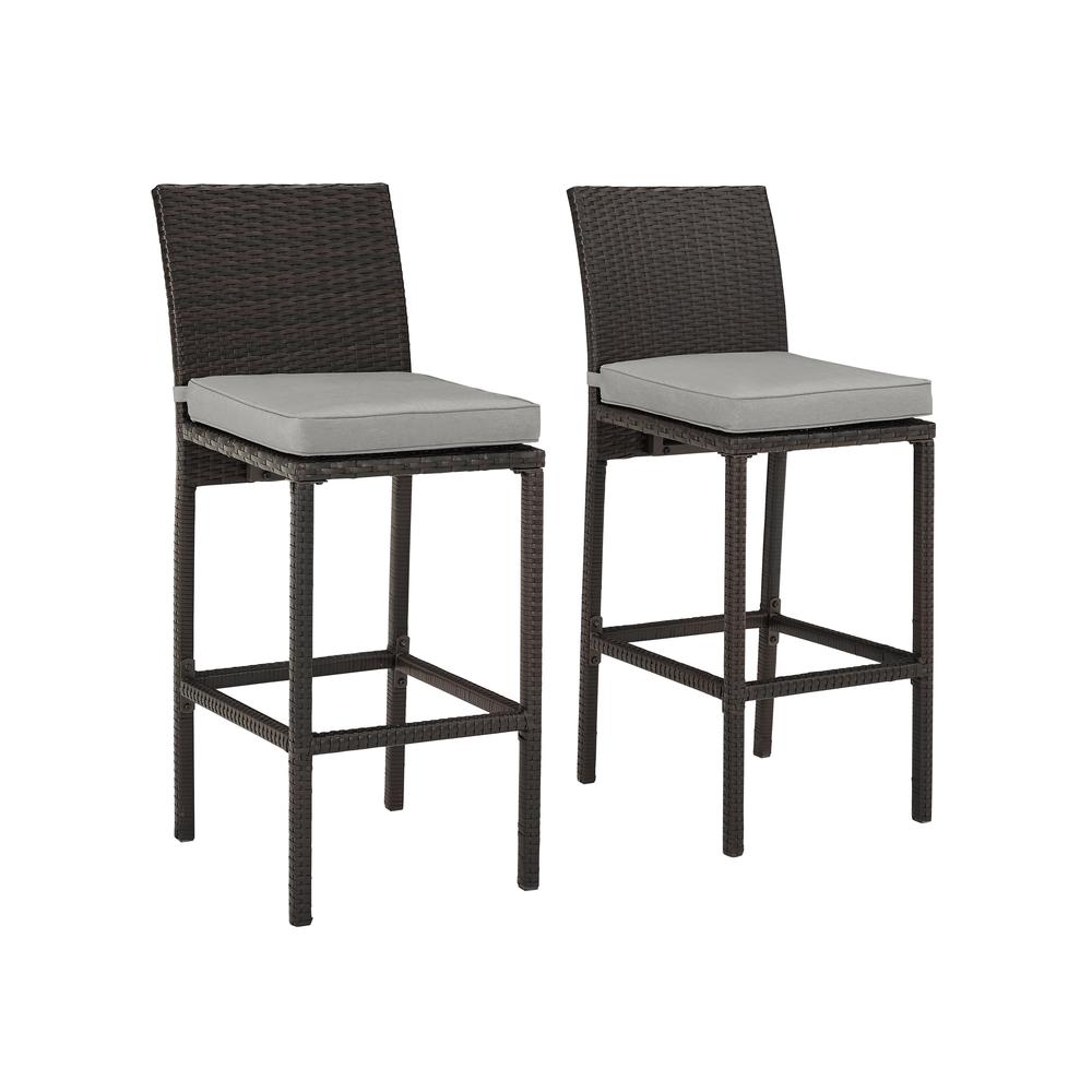Palm Harbor 2Pc Outdoor Wicker Bar Stool Set Gray/Brown - 2 Bar Height Bar Stools