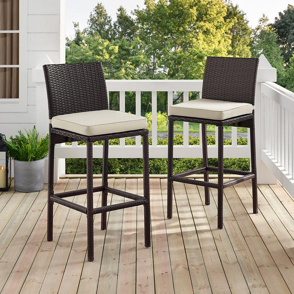 Palm Harbor 2Pc Outdoor Wicker Bar Stool Set Sand/Brown - 2 Bar Height Bar Stools