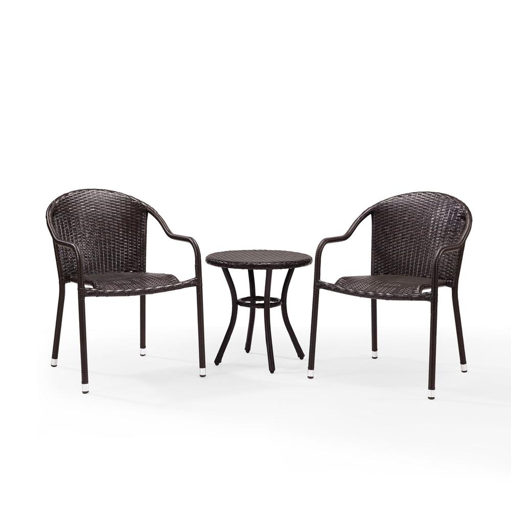 Palm Harbor 3Pc Outdoor Wicker Chair Set Brown - Round Side Table & 2 Stackable Chairs