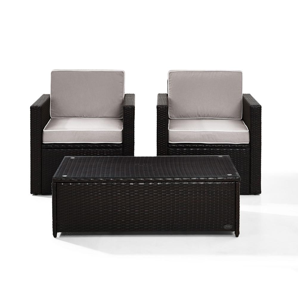 Palm Harbor 3Pc Outdoor Wicker Chair Set Gray/Brown - Coffee Table & 2 Chairs