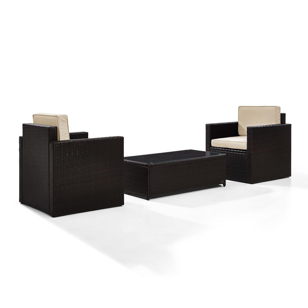 Palm Harbor 3Pc Outdoor Wicker Chair Set Sand/Brown - Coffee Table & 2 Chairs