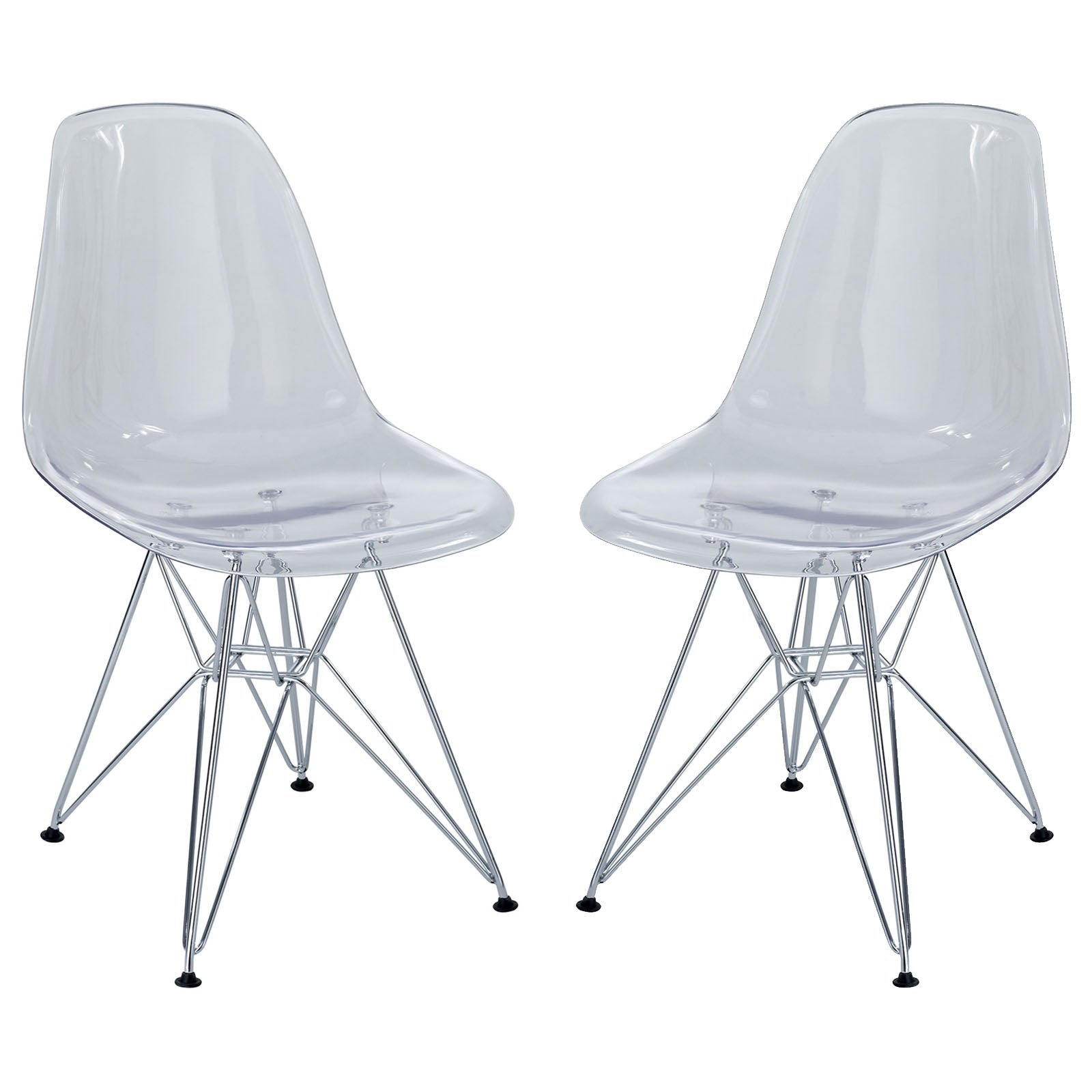 These molded plastic chairs are both flexible and comfortable, with an exciting variety of base options. Suitable for indoors or out, appropriate for the living and dinning room, these versatile chairs are a great addition to any home dŽcor statement. Set Includes: Two - Paris Wire Side Chair in Clear