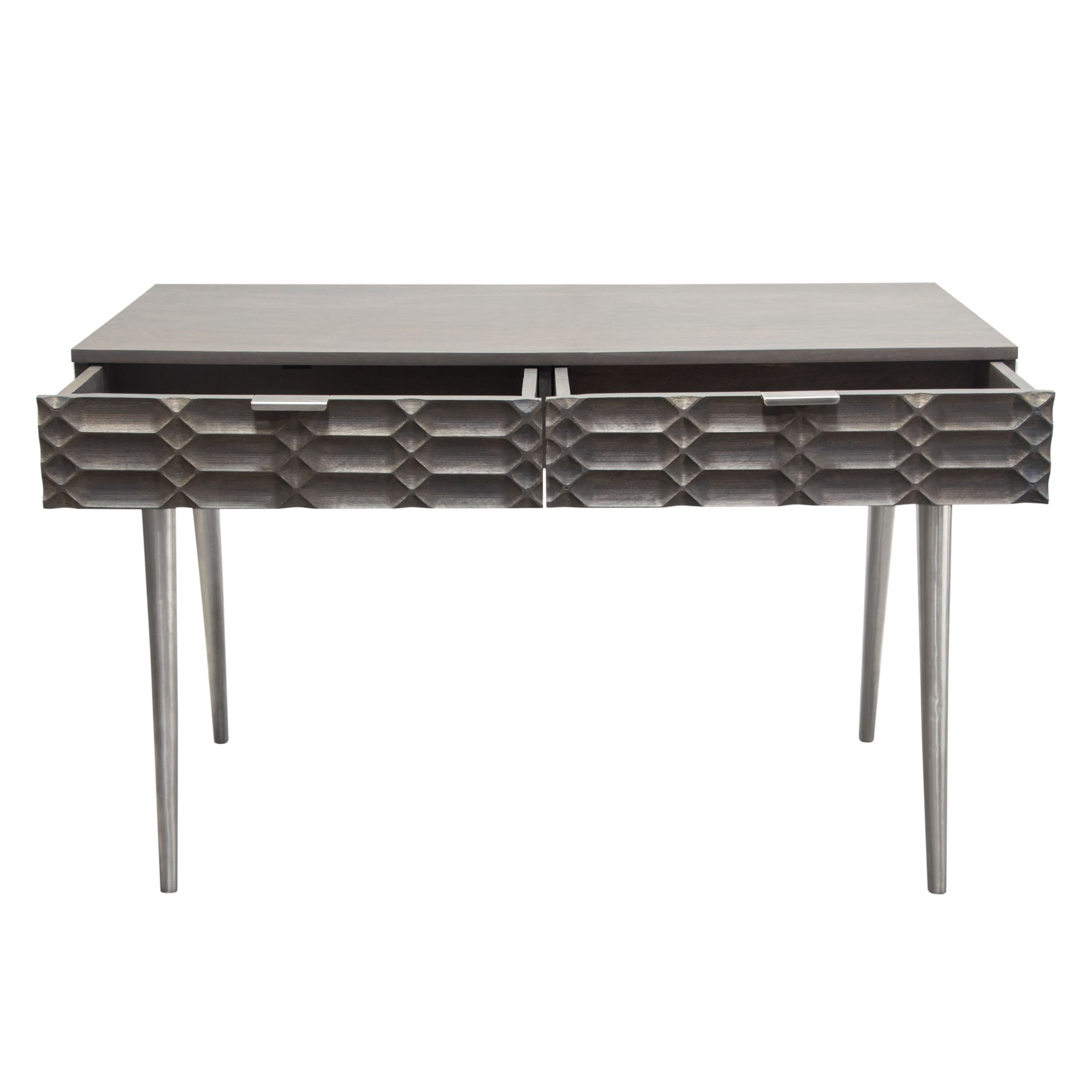 Petra Solid Mango Wood 2-Drawer Writing Desk in Smoke Grey Finish w/ Nickel Legs by Diamond Sofa