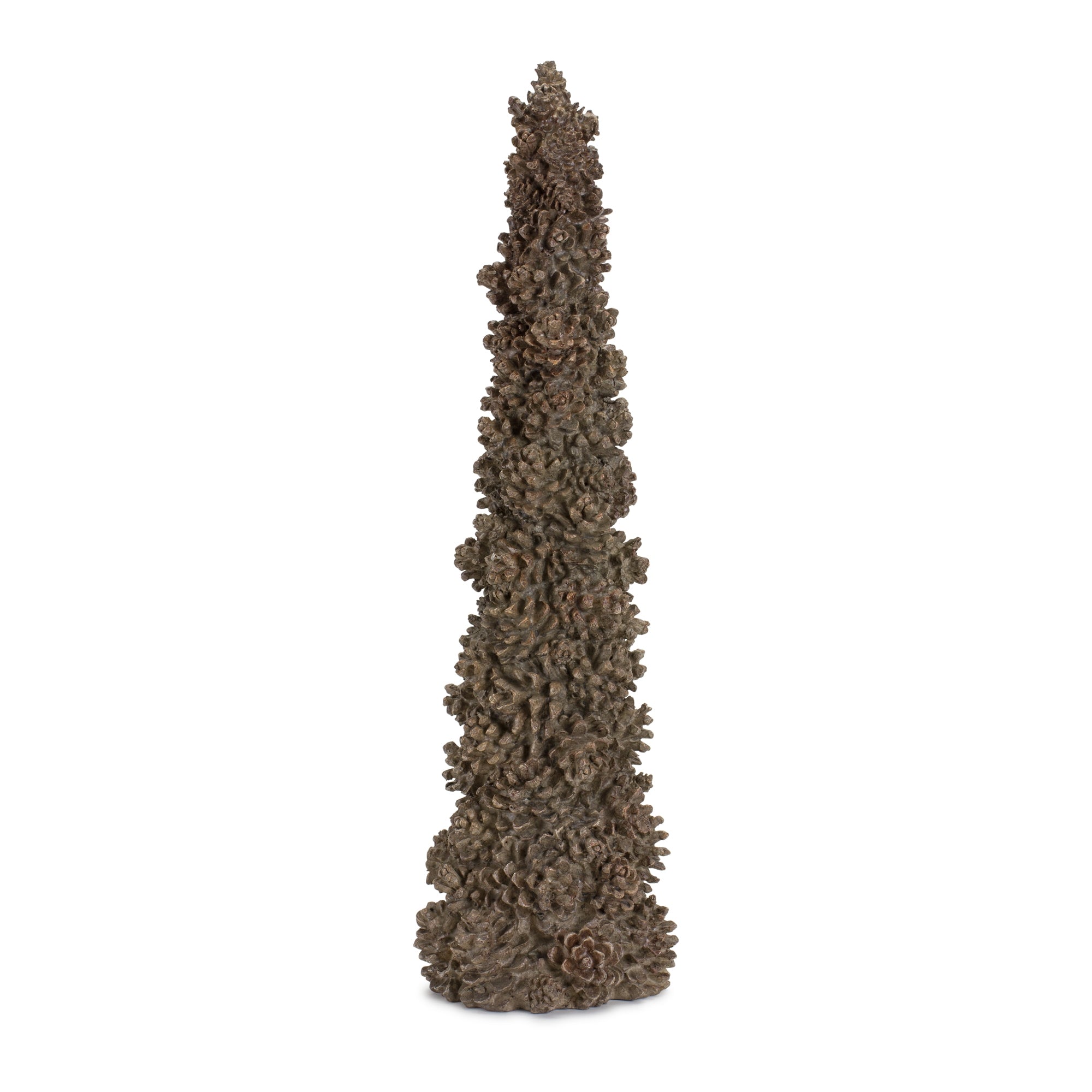 Enhance your holiday home decor with this beautiful set of Pine Cone Trees. Featuring two assorted sizes, the faux pine cone design paired with the realistic painted finish makes this piece the perfect addition to your Christmas decor. The quality carved polyresin composition is sure to last for seasons to come. This set would make a stunning floor display or could be used to add height to a table display., Pine Cone Tree (Set of 2) 15"H, 19"H Resin