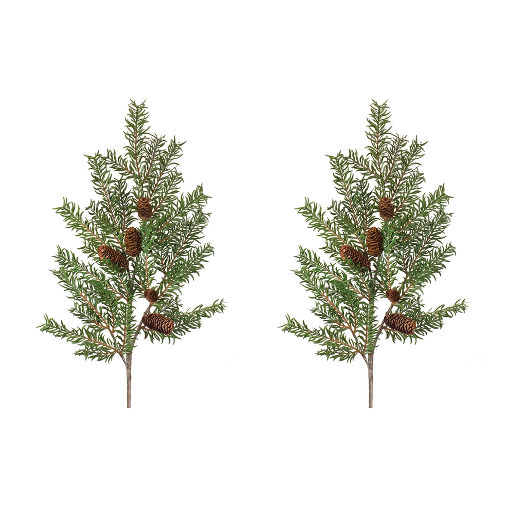 Add a touch of nature to your holiday dŽcor with this beautiful set of Pine Sprays. Featuring 2 pieces, this set is a great accent to your Christmas tree, holiday porch pot, or tabletop vase arrangement. The wintry green and brown tones paired with the pinecone accent is the perfect combination to create a memorable display. The quality plastic composition is sure to endure for seasons to come. Complete your holiday decor with this stunning set of Pine Sprays!, Pine Spray (Set of 2) 39"H Plastic