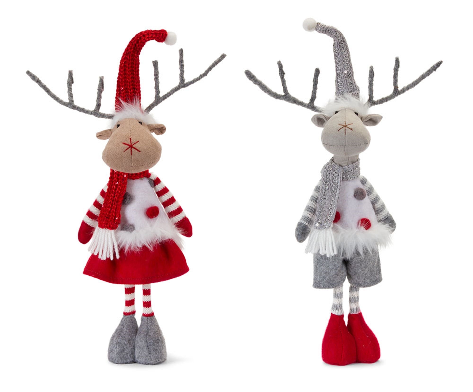 Add a whimsical touch to your holiday home decor with this adorable set of Plush Deer Shelf Sitters. Featuring two assorted designs, the bright red and grey color scheme paired with the quality polyester composition makes this set a great addition to any style of Christmas decor. Display the pieces together to make a statement, or display along with other decor to spread the holiday cheer., Boy & Girl Deer (Set of 4) 18"H Polyester