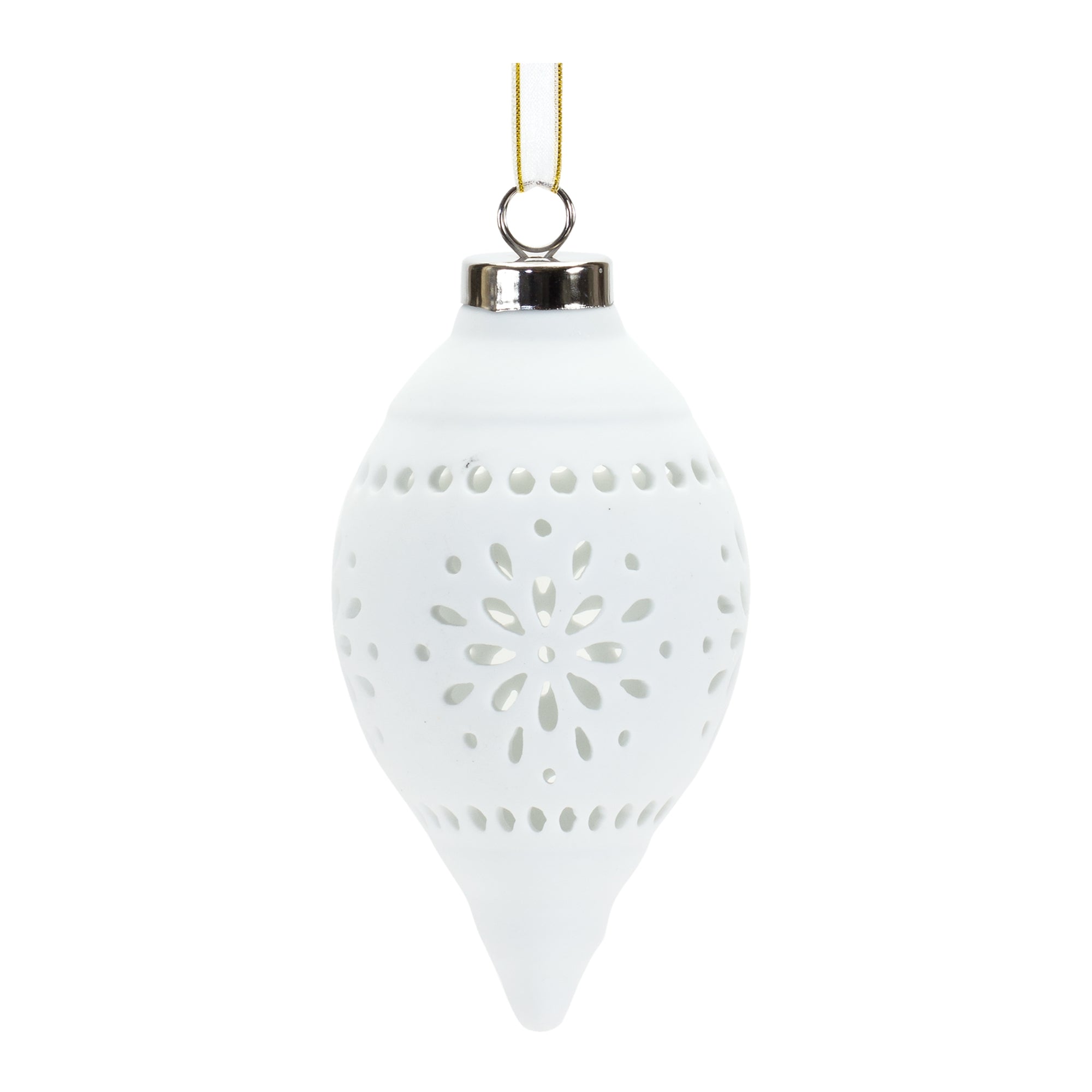 Adorn your Christmas Tree with this beautiful set of Ball Ornaments. Featuring two assorted designs, the classic ball and onion ornament design paired with the nordic cut-out snowflake design makes this set the perfect addition to your holiday tree decor. The quality porcelain composition is sure to last for seasons to come. The pieces can be used as gifts for friends to cherish, or you can display the set on your own Christmas tree and enjoy them for years to come., Ornament (Set of 6) 4"H, 5.5"H Porcelain