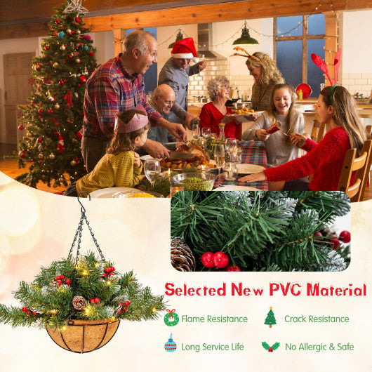 Pre-Lit Artificial Christmas Hanging Basket with Pine Cones