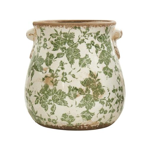 Arrange your fauxbolous flowers in this floral print vase (set of 1). The vintage ceramic planter has a homey feel with its palette of green flowers against a rugged backdrop. DIY and have fun mix-matching for a country chic look that delivers that fresh farm to home style. No drainage holes and indoor use only.