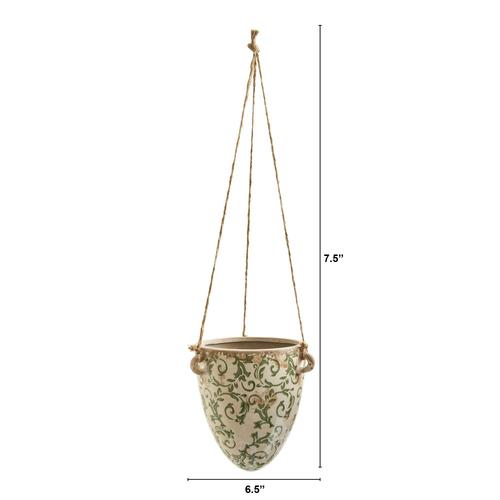 A modern take on the classic print pattern, house your fauxbolous arrangement in this floral design hanging planter. The traditional ceramic vase has a homey, cozy feel that is perfect for rustic, transitional and farmhouse inspired spaces. The rope is 2’ high and you can customize for your space. No drainage holes and indoor use only.
