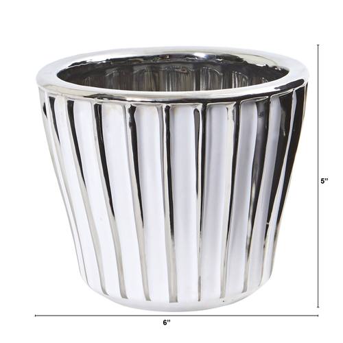 Is your space in need of some color, depth, and shape? If yes, you will love this white vase with silver trimming. DIY your dream arrangement and house your favorite flowers for a little dimension. Reaching 6" wide, you can create your dream arrangement today quickly and effortlessly.