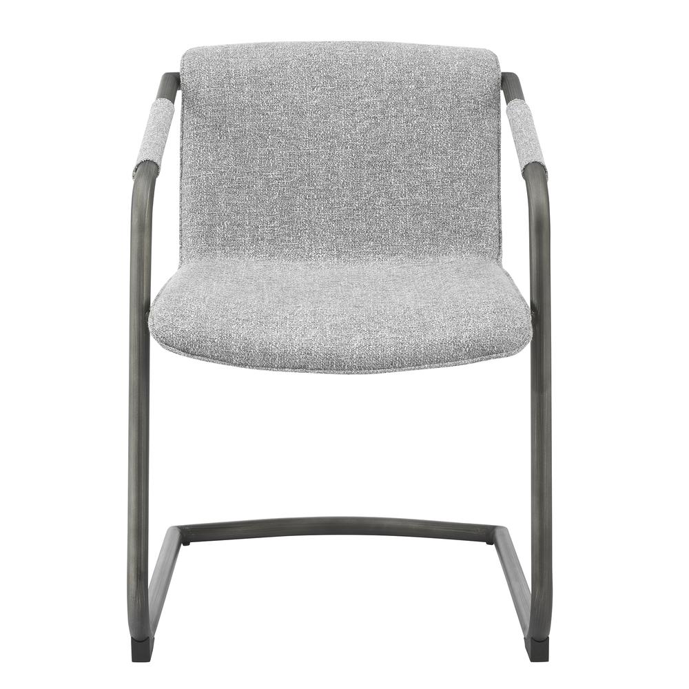 If youÕre partial to functional, no-nonsense design, youÕll love this Industrial Chic side chair. It can be easily stored and then put to service where and whenever extra seating is needed. The latest is available in Blazer Light Gray (shown). The cantilevered metal frame comes in Rubbed Gray, Rubbed Gold and Silver finishes. Fully assembled, available in other color and upholstery options, set of 2.
