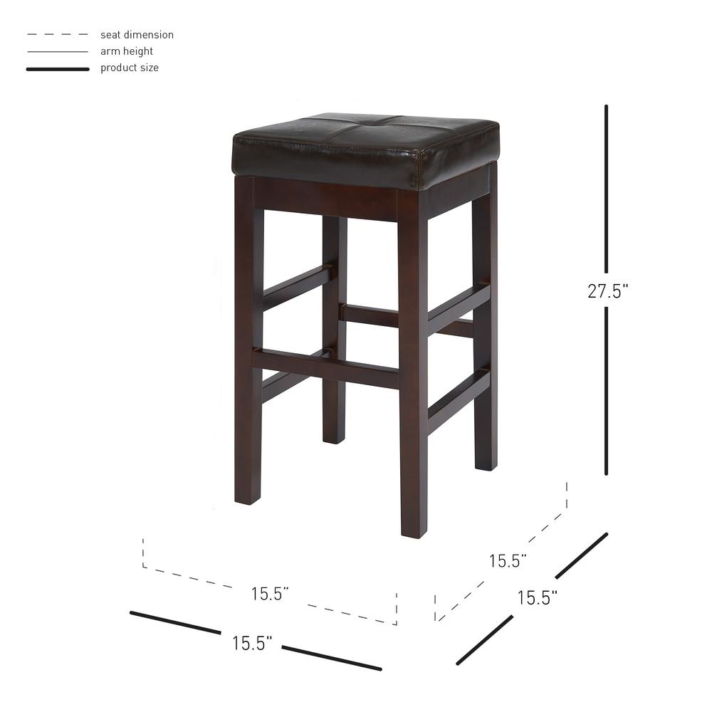 Valencia Backless Counter Stool Ð Quintessential styling for your kitchen with the Valencia Backless counter stool. Tight, tailored stitching on cushy, square shape cushion creates simple styling that makes this piece a classic favorite! Fully assembled, available in a variety of upholstery and leg color options, 27.5Ó seat height.