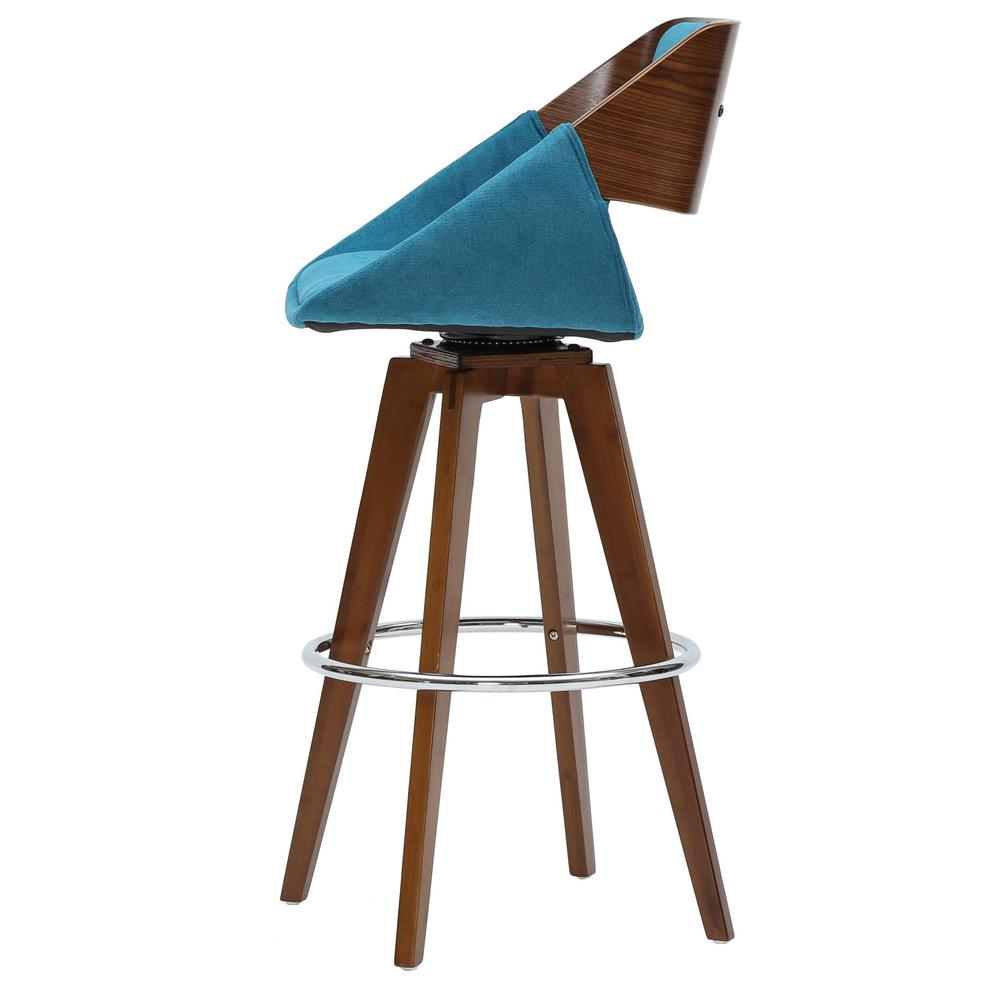 Your home's kitchen island will stand apart from the others when you select the Cyprus 360-degree-swivel counter stool. WhatÕs more, family members and guests will want to linger, since the barstool's back cushion, upholstered seat and flared arms are designed to cradle the sitter. The exposed bent-wood walnut frame and walnut-finished legs are the foundation of this Mid-Century-inspired design. The circular leg support is chrome. Some assembly required, available in Santorini Teal and Santorini Sand, 26.0" seat height.