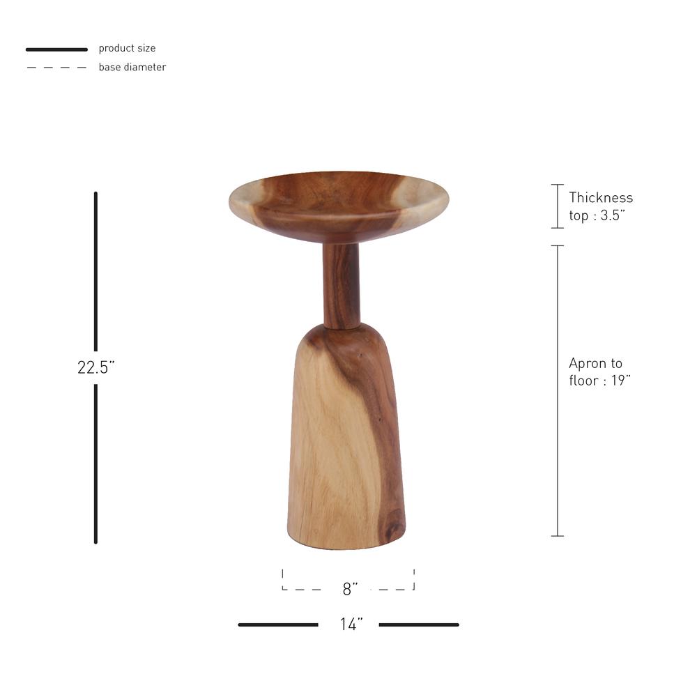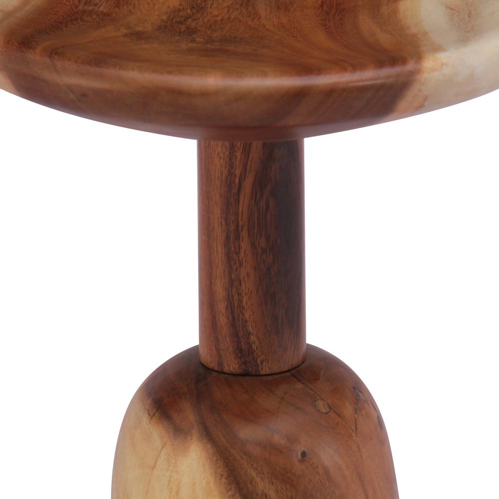 Bold and contemporary with an Artisan Appeal, the Kawhi Collection Side/End Table is made from solid Trembesi wood and features a beautiful dark brown table top. All of the woodÕs characteristics like knots, holes and small fissures serve to make the piece unique. The table top is set on an alluring abstract base, in order to highlight its uncommon look. Some assembly required. Available in Dark Brown and Natural Tops.