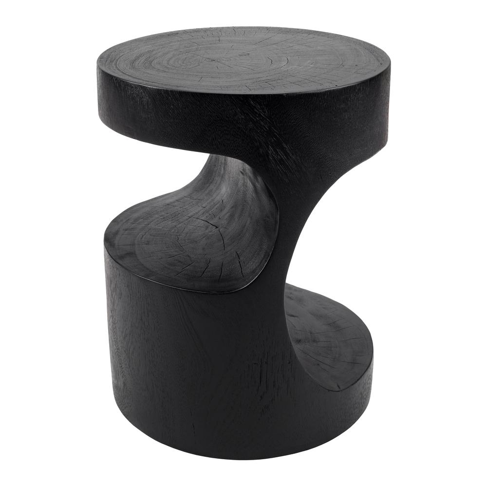 Bold and contemporary with an Artisan Appeal, the Theo Side/End Table is made from solid Trembesi wood that's painted black for an ultra modern appeal . The table top is set on an alluring abstract base that twists one-quarter , in order to highlight its uncommon look. All of the woodÕs characteristics like knots, holes and small fissures serve to make the piece unique. Fully Assembled. Available in Natural and Black.