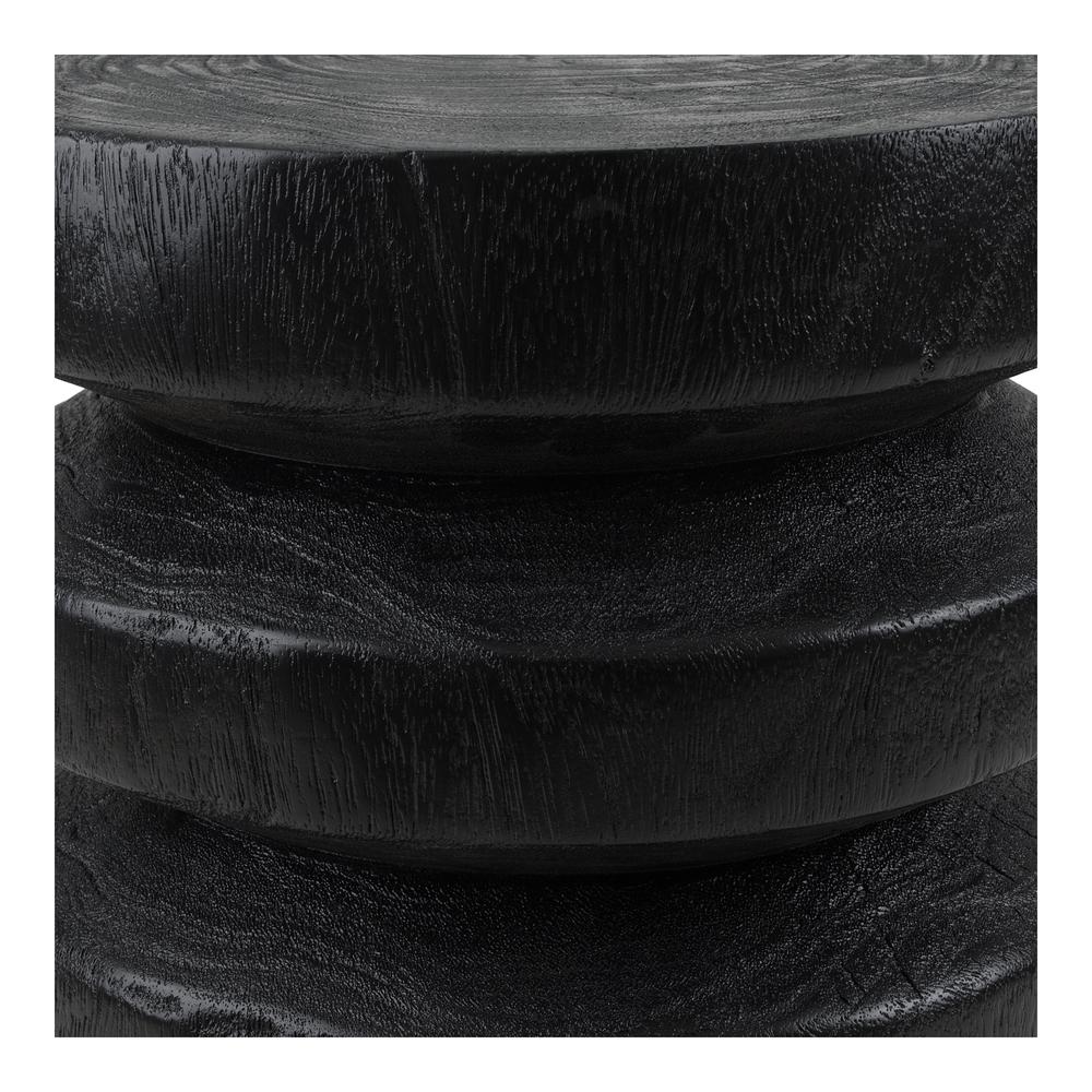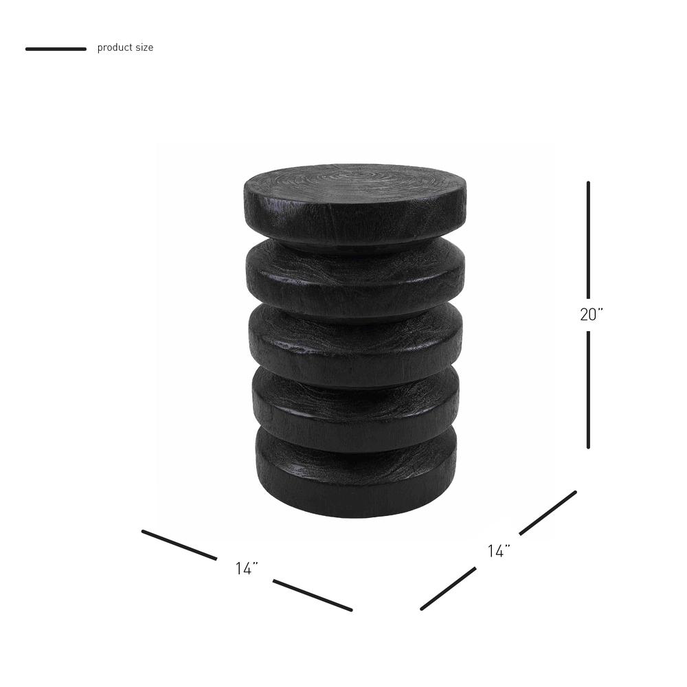 Minimalist and Dramatic, the Timo Side/End Table is made of solid Trembesi wood. Its spiraling ridges and column shape design punctuated in black finish, it presents a contemporary luxe vibe with a floating effect. All of the woodÕs characteristics like knots, holes and small fissures serve to make the piece unique. Fully Assembled.