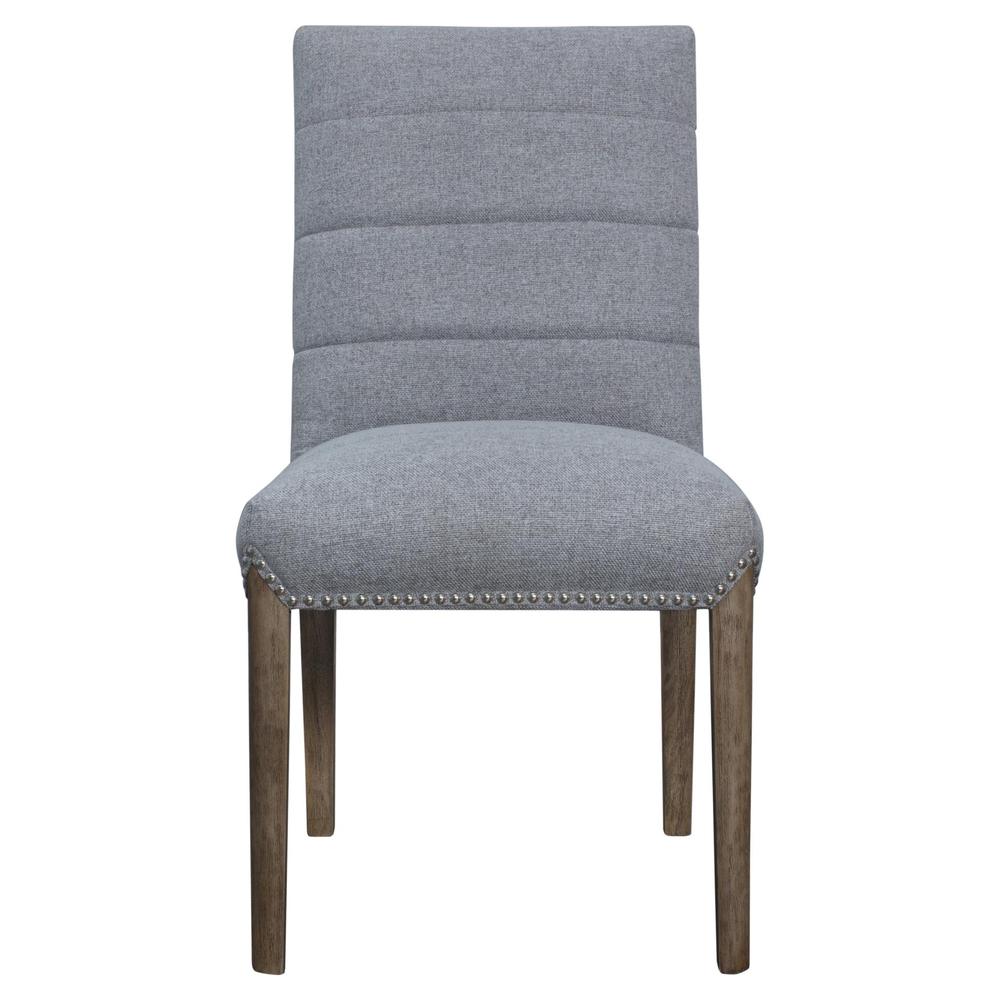 Upgrade your dining room or breakfast nook with versatile, comfortable seating É introducing Alfred, a fabric chair with comfort channeling, decorative silver nailhead trim and on-trend finishes. The wood legs are offered in the Natural Drift finish, a popular choice for modern luxe interiors. Choose from two fabric colors: Havana Linen and Havana Gray (shown). Fully assembled, set of 2.