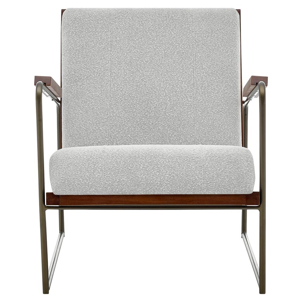 A lounge chair for the homeowner who prefers unique furnishings with an artisanal edge. The chairÕs frame is solid wood and iron with a bronze finish; the cover is a versatile neutral in Boucle-like material. Fully Assembled, available in other color options.