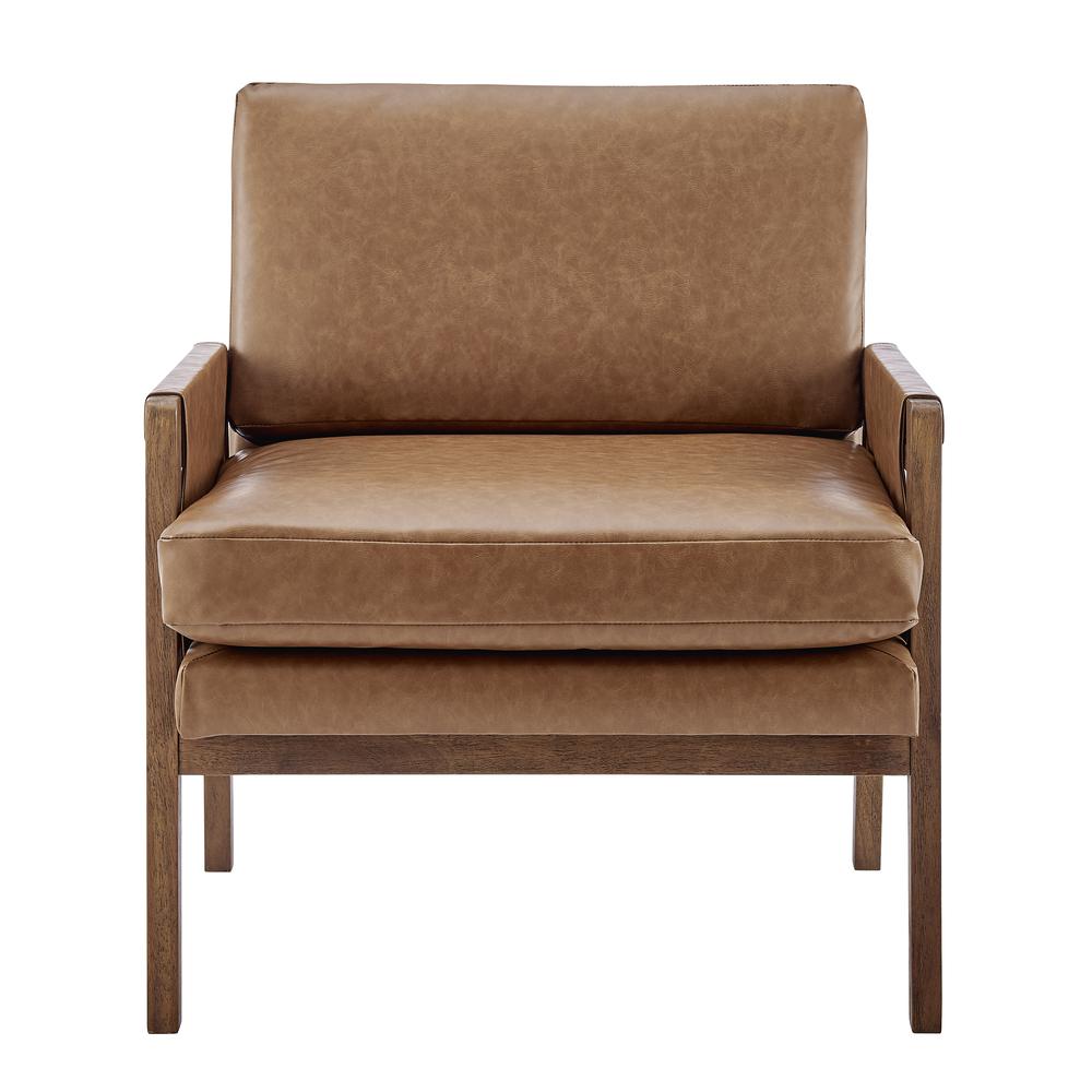 Timeless aesthetics for the modern sensibility is the gorgeous Colton accent chair! Generously sized seating area and angular arm rests are handsomely embellished with faux leather upholstery in rustic tone. Solid wood legs completes and enhances the classy appeal. Fully Assembled. Available in Vintage Cider PU and Vintage Gray fabric options.