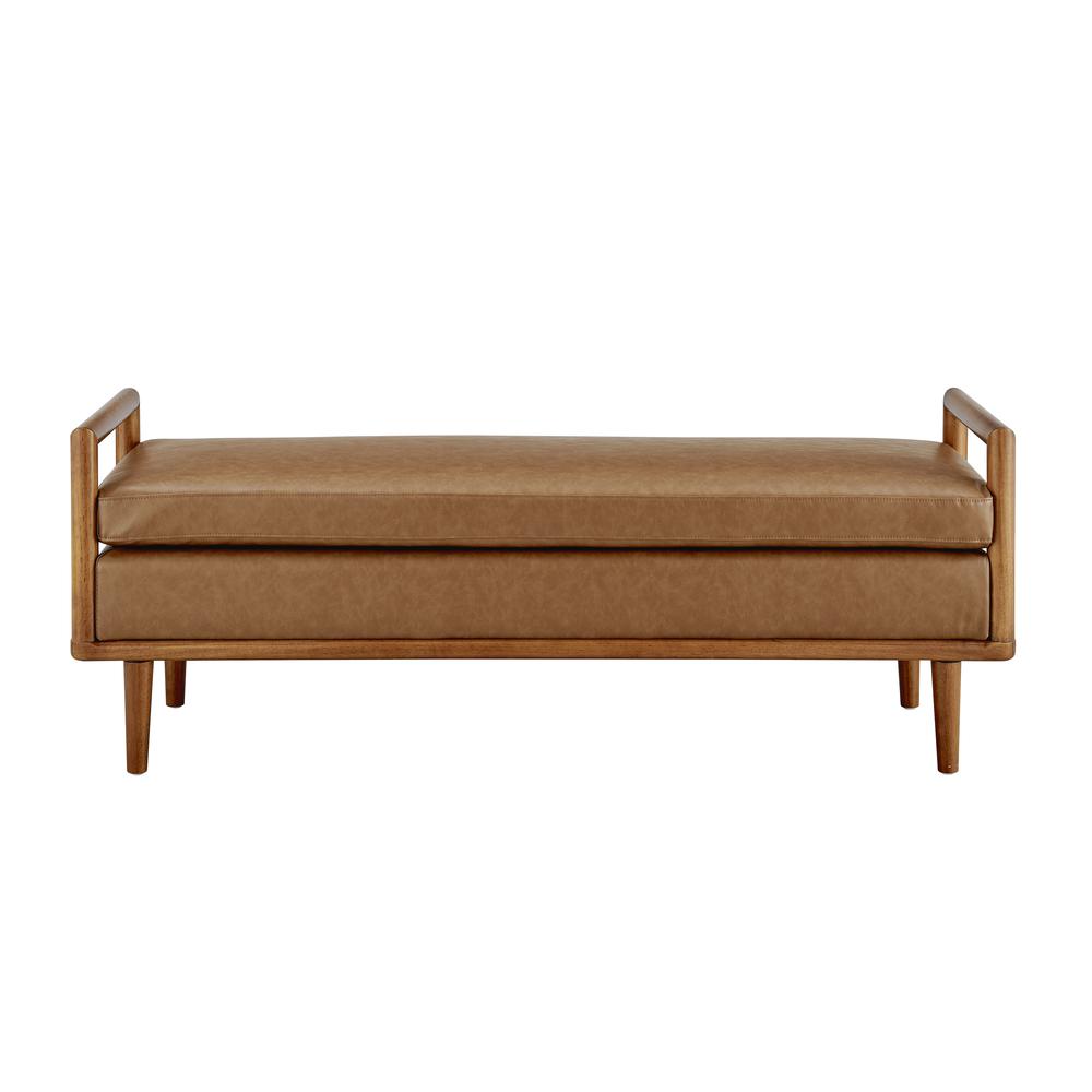 The Classic & Timeless Bench is refreshed in the Mid-Century style, this 55.5" width bench boasts high-density foam cushion embellished in faux leather and matching solid wood frame. Easy Assembly. Available in Vintage Cider.