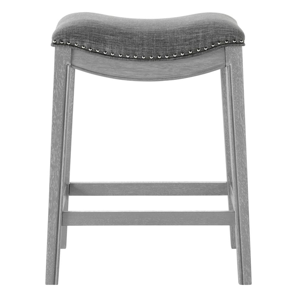 Meet Grover counter stool, a classy, yet casual, design that suits a variety of kitchen styles. The wood legs are offered in an on-trend Ash Gray finish, and the seat is available in a variety of covers, including both fabric and a durable, leather-like option Ñ this is Lyon Dark Gray with silver nailheads.