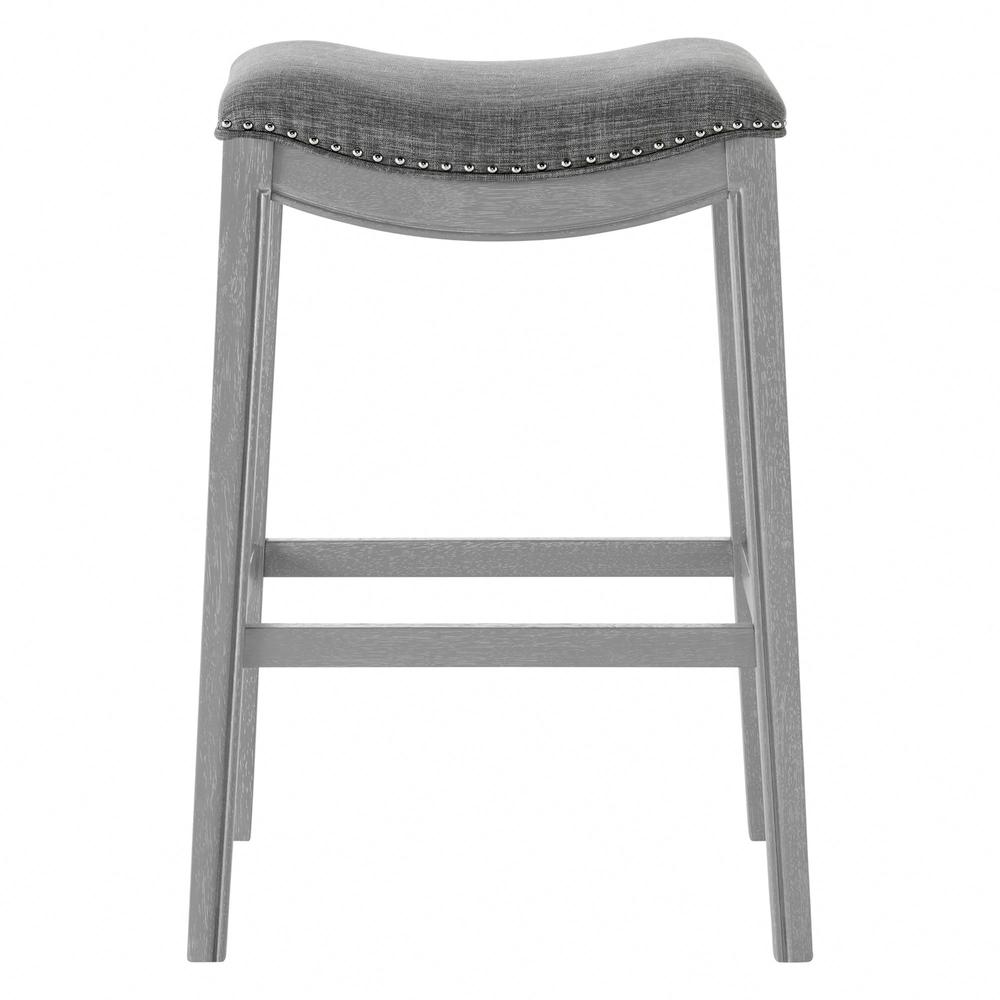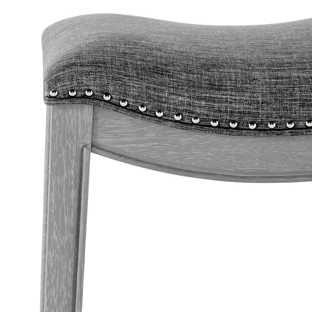 Meet Grover bar stool, a classy, yet casual, design that suits a variety of kitchen styles. The wood legs are offered in an on-trend Ash Gray finish, and the seat is available in a variety of covers, including both fabric and a durable, leather-like option Ñ this is Lyon Dark Gray with silver nailheads. Some assembly required, available in other color options, 29.5" seat height.