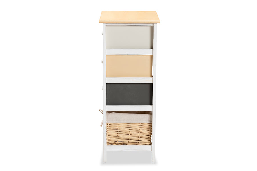 Baxton Studio Adonis Mid-Century Modern Transitional Multi-Colored Wood 3-Drawer Storage Unit with Basket