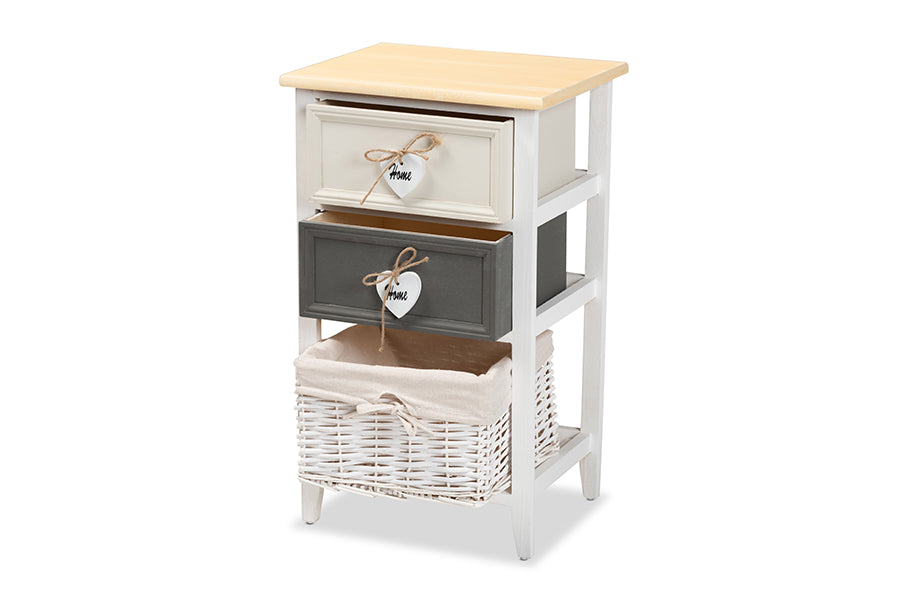 Baxton Studio Diella Modern and Contemporary Multi-Colored Wood 2-Drawer Storage Unit with Basket