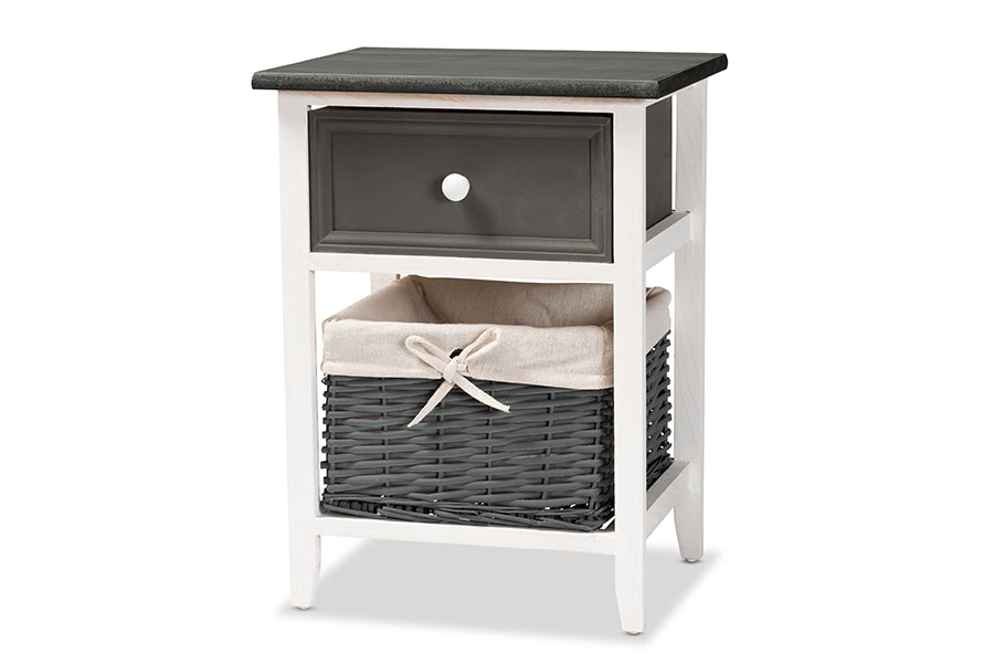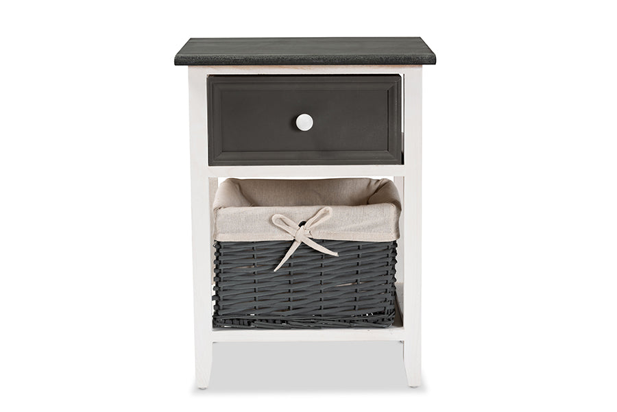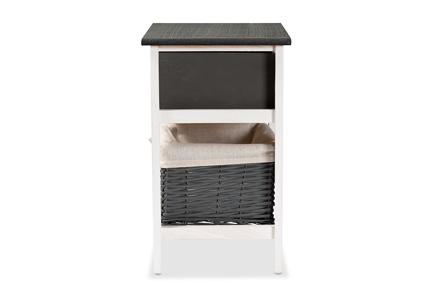 Baxton Studio Shadell Modern Transitional Two-Tone Dark Grey and White Finished Wood 1-Drawer Storage Unit with Basket