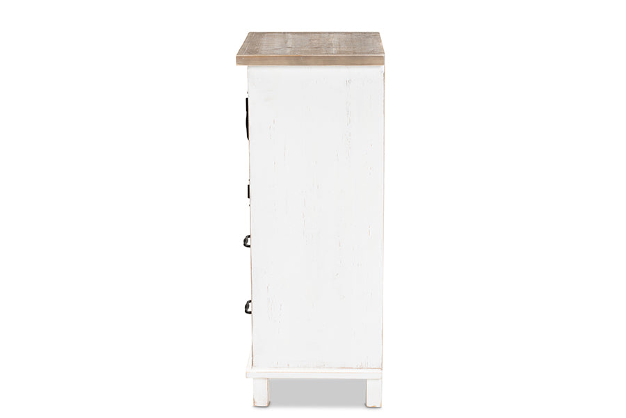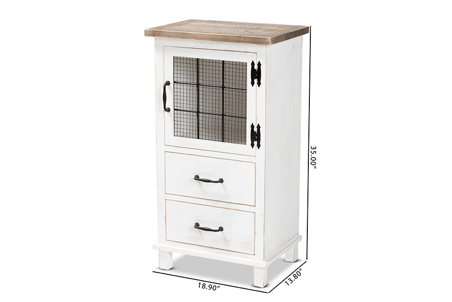 Baxton Studio Faron Classic and Traditional Farmhouse Two-Tone Distressed White and Oak Brown Finished Wood 2-Drawer Storage Cabinet
