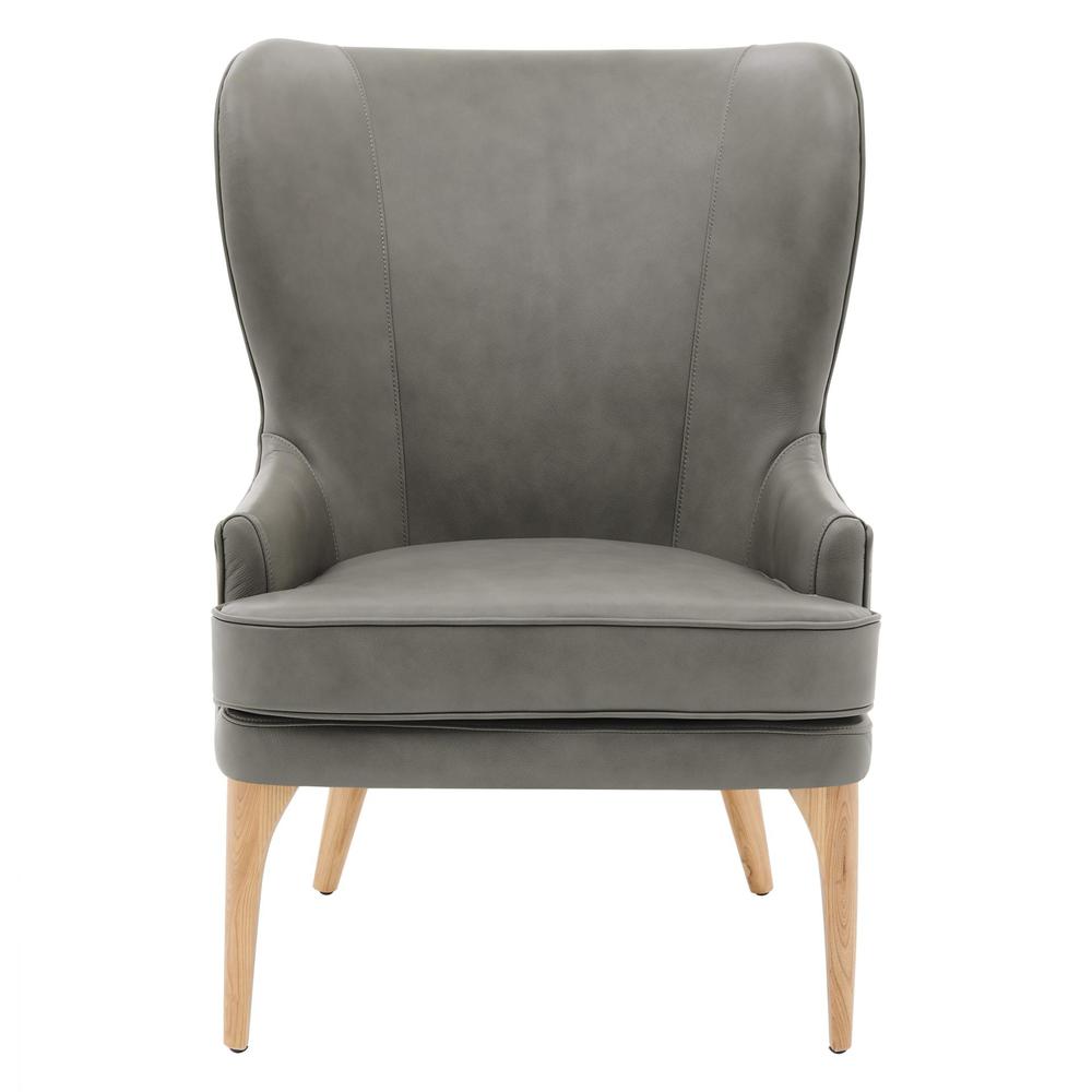 The Bjorn top-grain accent chair is inspired by a traditional wingback chair. But it offers retro twists, too, namely shapely curves and tapered legs that recall Mid-Century Modern design. ItÕs a perfect addition to your living room or bedroom. Some assembly required. Choose from three top-grain leathers: Garrett Brown, Garret Blue or Garrett Taupe. Some assembly required, available in other color and top grain leather options.