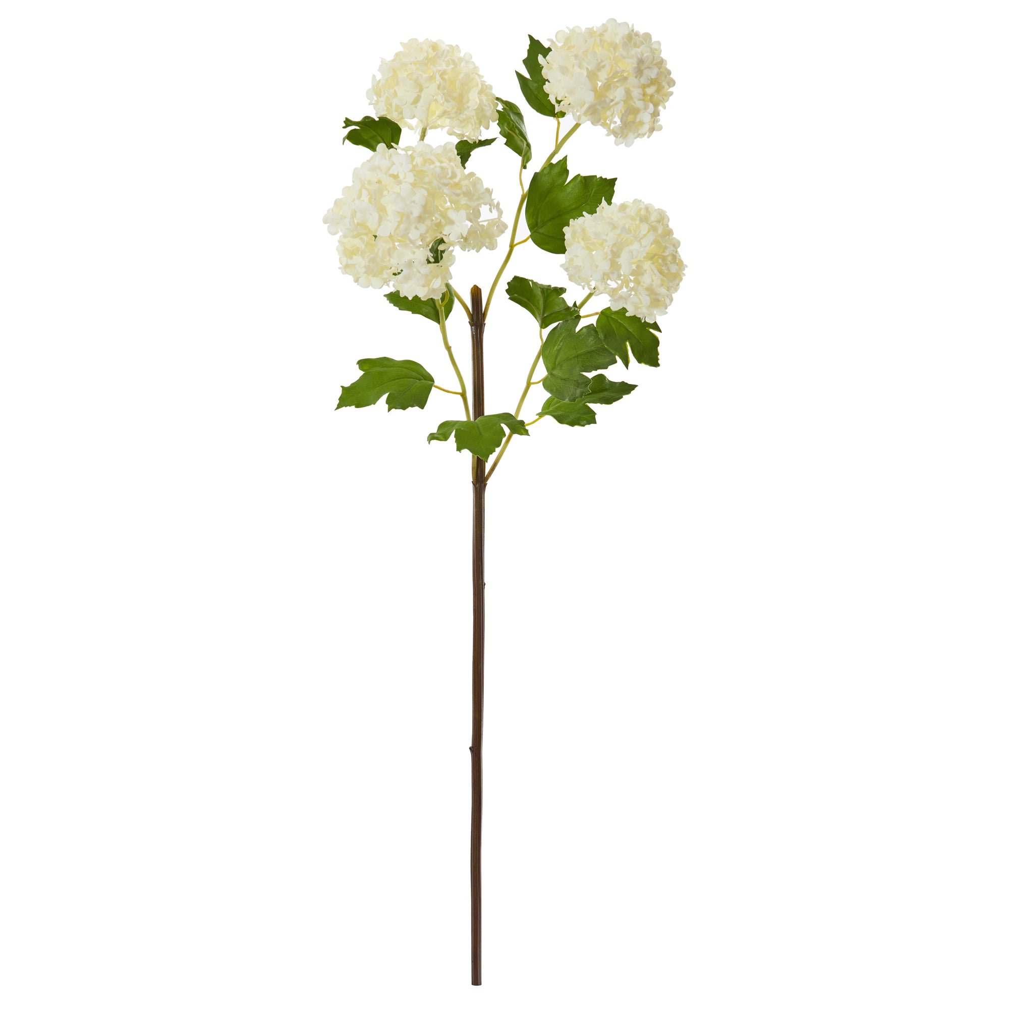 Fill your home with natural beauty with this set of artificial hydrangea snowball stems consisting of small, delicate florets designed in soft, muted tones highlighted with realistic greenery. Incredibly lifelike, these 30" stems come in a set of three and would make a lovely accent in a brightly lit bedroom.