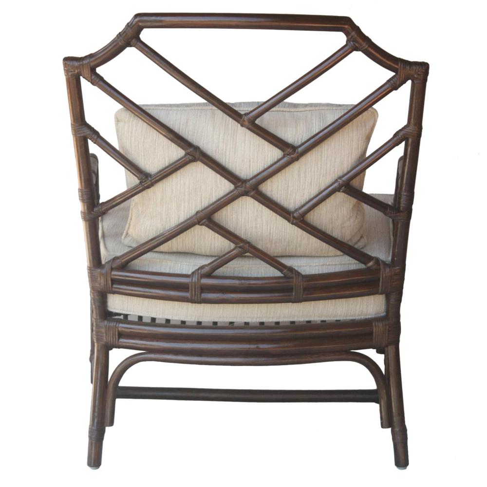 A rattan accent chair reproduction from the original master cabinet maker, the Kara collection is a Chinese Chippendale style design inspired by pagoda motifs with visually appealing diagonal lines. Fully assembled, available in Paloma Brown or Canary Brown.