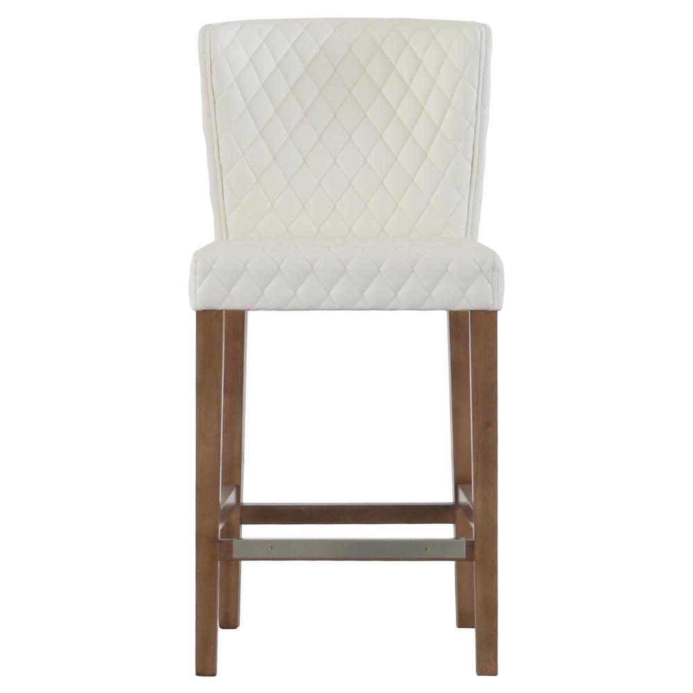 Albie counter stool is like a designer handbag É itÕs timeless, elegant and dresses up any dining space. The quilted faux leather is offered in a trio of attractive neutrals Ñ Danburry White, Danburry Dune and Danburry Gray Ñ and the leg is solid beechwood in a mid-tone brown finish.