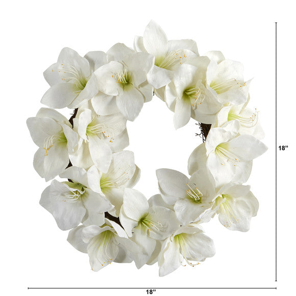 Showcase the delicate side of Mother Nature's beauty from the entrance of your home or office with the help of this artificial wreath. Intricately designed from a collection of silk amaryllis flowers frozen in mid-bloom and requiring absolutely no maintenance, it comes in a soft, clean palette that can easily be incorporated into your decor scheme no matter the time of year. Perfect for sprucing up a bare wall or an empty doorway, this 18" (in circumference) decorative wreath would undoubtedly make a stunning focal point wherever displayed.