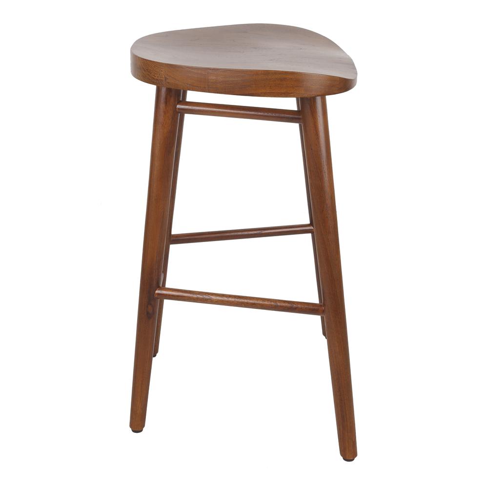 Minimalist Modern Tractor Seat Profile - It's old school, yet offers a contemporary vibe to the space. In its natural color form, this solid mindi wood 25" h counter stool incorporates contoured seating and the footrest stretcher that rests just on the right spot for maximum comfort. Fully Assembled. Available in Cinnamon Brown and Natural.