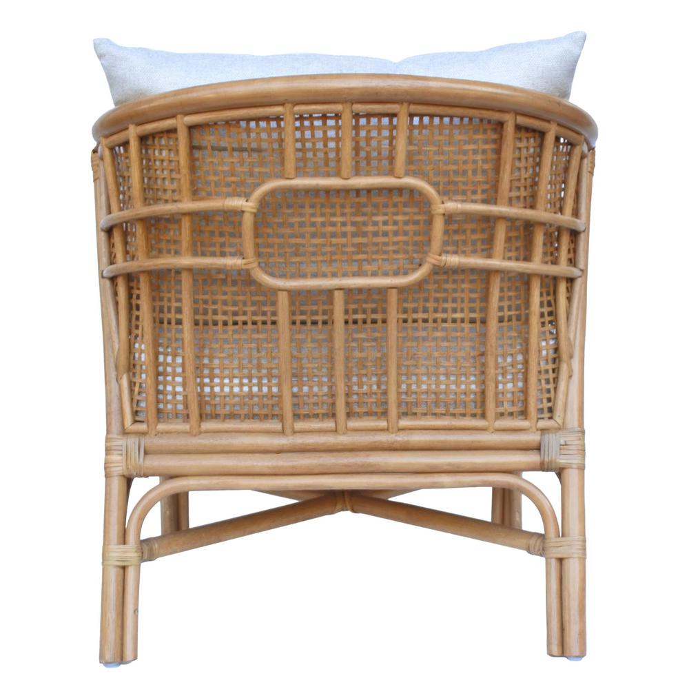 Take a seat in Ferrara, and you might imagine a cool breeze at an amenities-packed resort. Rattan wraps around a shelter profile arms to form this tropical-inspired accent chair. The back side highlights intricate geometric design element. The indoor-only cushion is covered in a polyester fabric. Fully assembled, available in Canary Brown and Black/Natural.