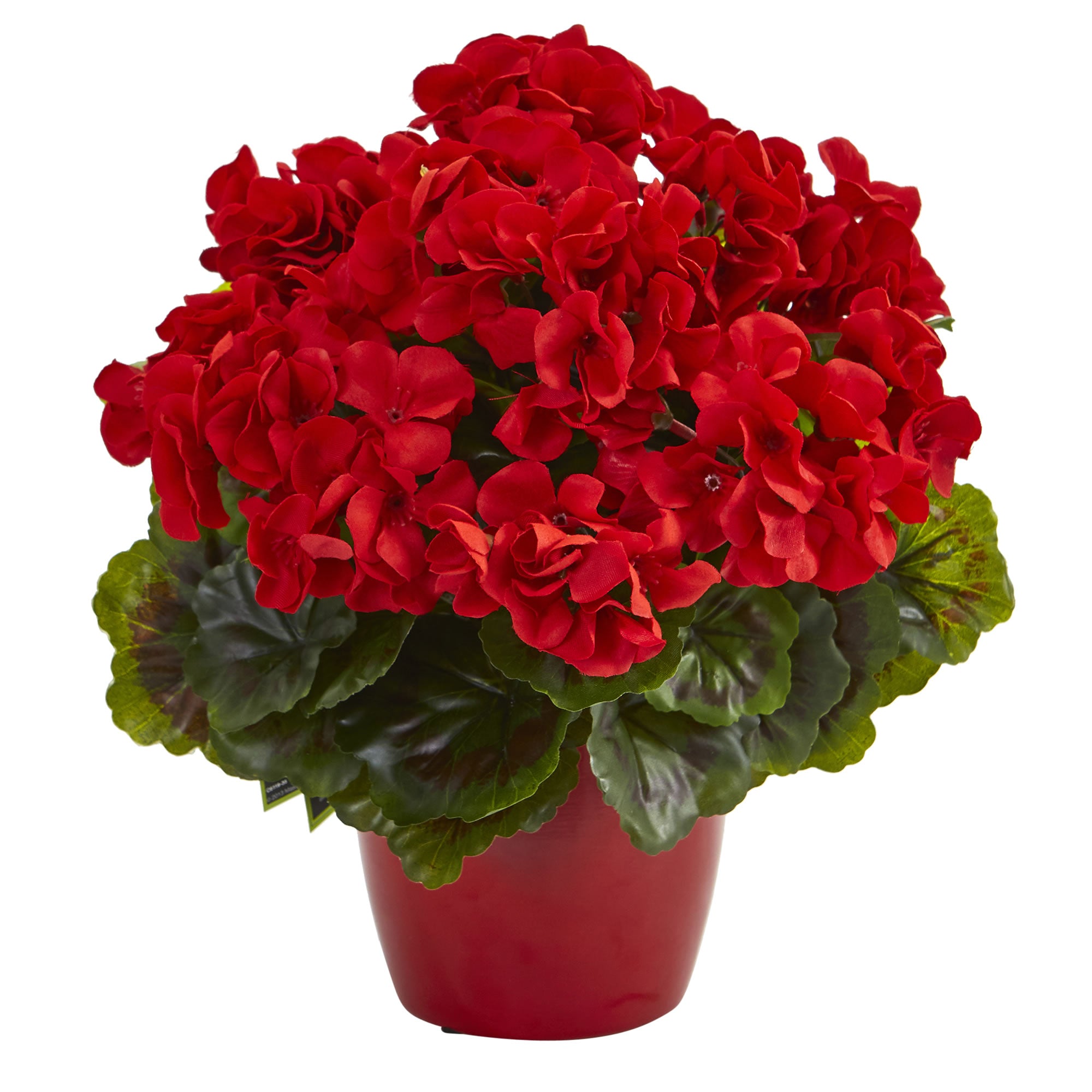 Nearly Natural Geranium Artificial Plant In Ceramic Vase Uv Resistant (Indoor/Outdoor) (Set Of 2) 8189-S2-RD