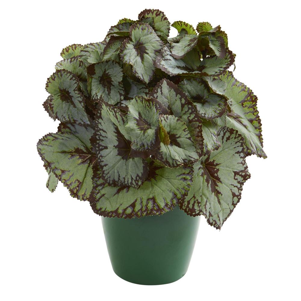 Rex Begonia Artificial Plant in Green Planter (Set of 2)