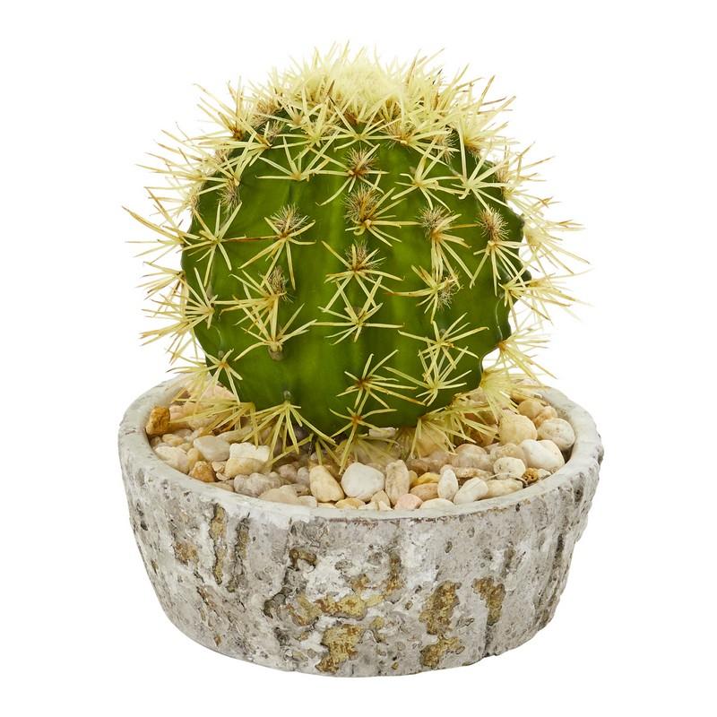 Freshen up your office with this set of artificial cacti featuring naturally occurring details like (faux) needles. Standing 7” high from their own weathered planters carefully nestled with natural tone rocks, this set is great for sprucing up a work desk or tabletop.