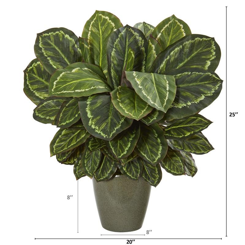 Bring the tropics indoors with this artificial maranta plant showcasing realistic leaves in variegated colors. Oversized and overlapping, its leaves help create a full, lush look. Standing 25” tall from a decorative planter, it helps create a beautiful indoor garden without any of the mess.
