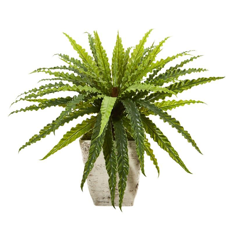 Add year-round greenery to everyday spaces with this artificial asplenium plant boasting an overgrowth of multi-hued greenery that naturally fans up and outwards from its accompanying country white planter. Reaching 24” tall, it’s great for sprucing up bare corners in your home or office.