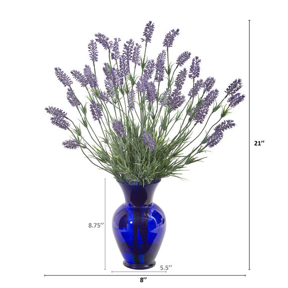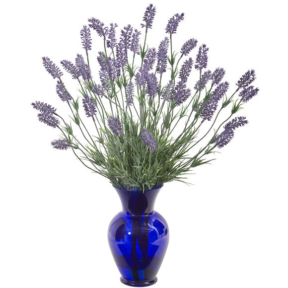Nearly Natural 21" Lavender Artificial Plant in Blue Vase