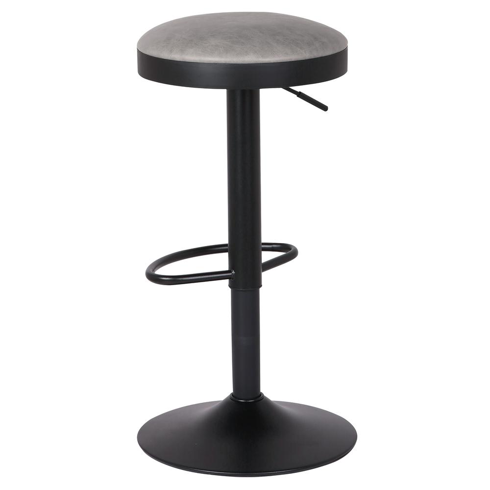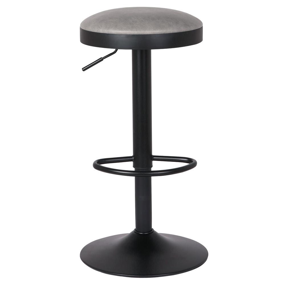 Our Modern Industrial-style stool will provide you and your guests with comfortable, attractive seating that adjusts from 23 inches high to 31.5 inches high. The stool is topped with Vintage Coffee Brown leather-like fabric and features a handy foot rest encircling the black steel base. The seat swivels 360 degrees and also moves up or down pneumatically with the help of a small lever. Some assembly required, available in Vintage Coffee Brown and Vintage Mist Gray, set of 2.