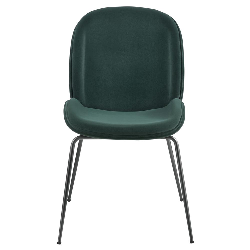 Urban Elegance for a sophisticated disposition. The Lucy chair collection highlights soft and rounded edges with velvet upholstery, fashioned on slim metal legs for a look that's simple and sleek. Some assembly required. Available in Gallery Dark Green. Set of 2.