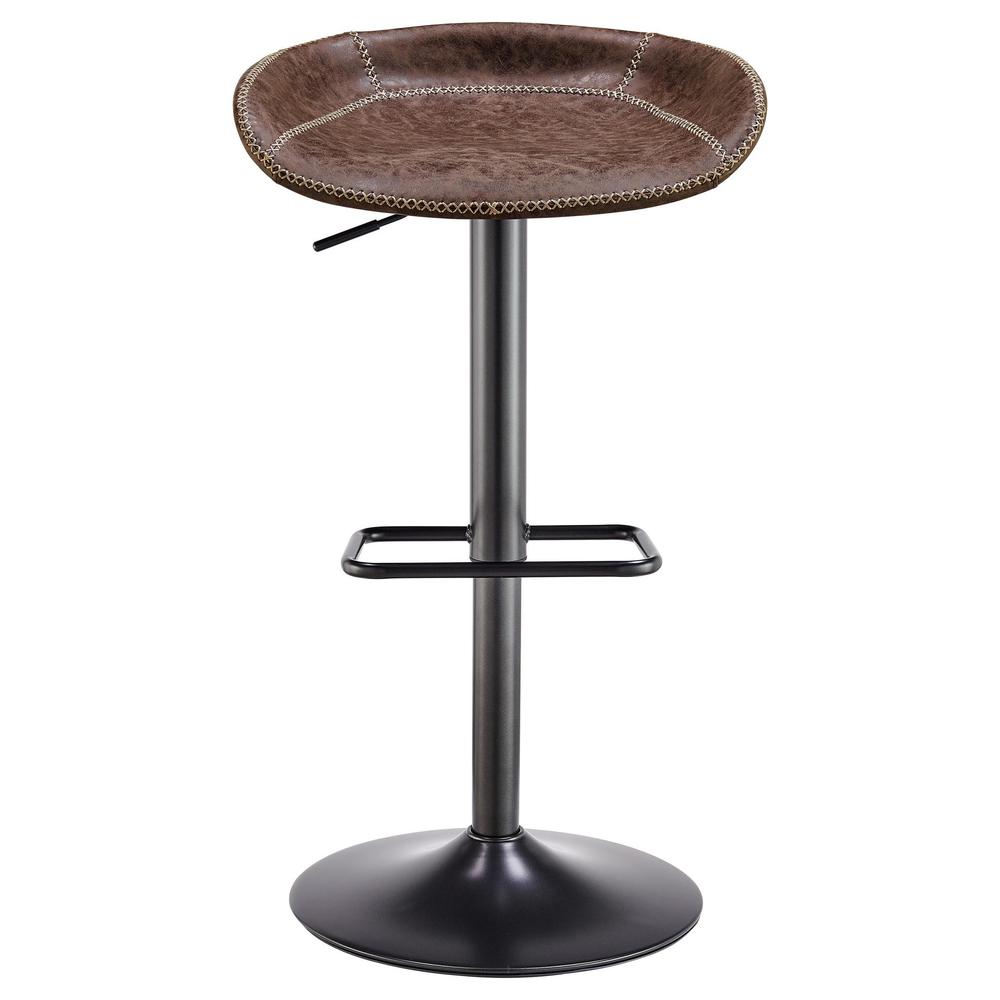 Family members and guests will experience custom-like comfort when seated on Rogue bar stool. ItÕs powered by a gas-lift mechanism that lets the sitter adjust the seat height from 23 inches to 31.5 inches, and all the points in between. Take note of the whipstitch detail and distressed leather-like cover. Available in Vintage Black and Vintage Coffee Brown on Metallic Gunmetal frame, set of 2.