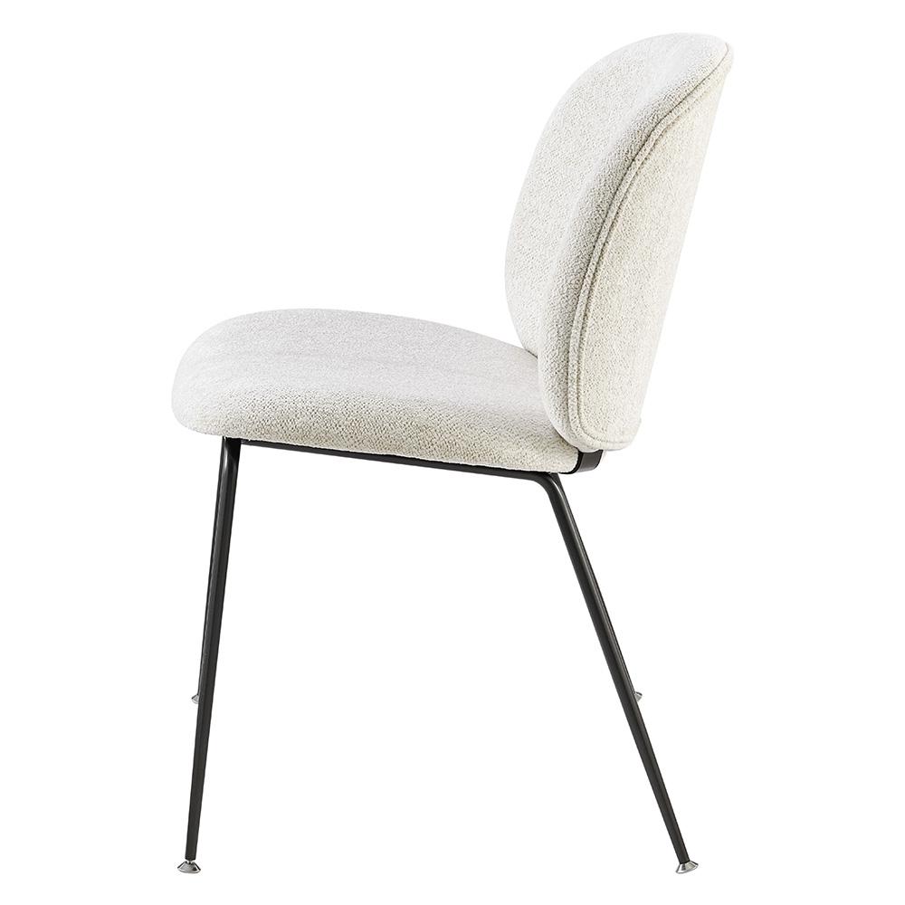Charming & Playful vibe all around! -- its rounded profile and one button decor on the back seat instill a softness while the slim metal legs give it a sleek disposition. This chair is versatile and a nice solution to uplift any space. Easy Assembly. Available in Posh Ivory and Posh Gray.