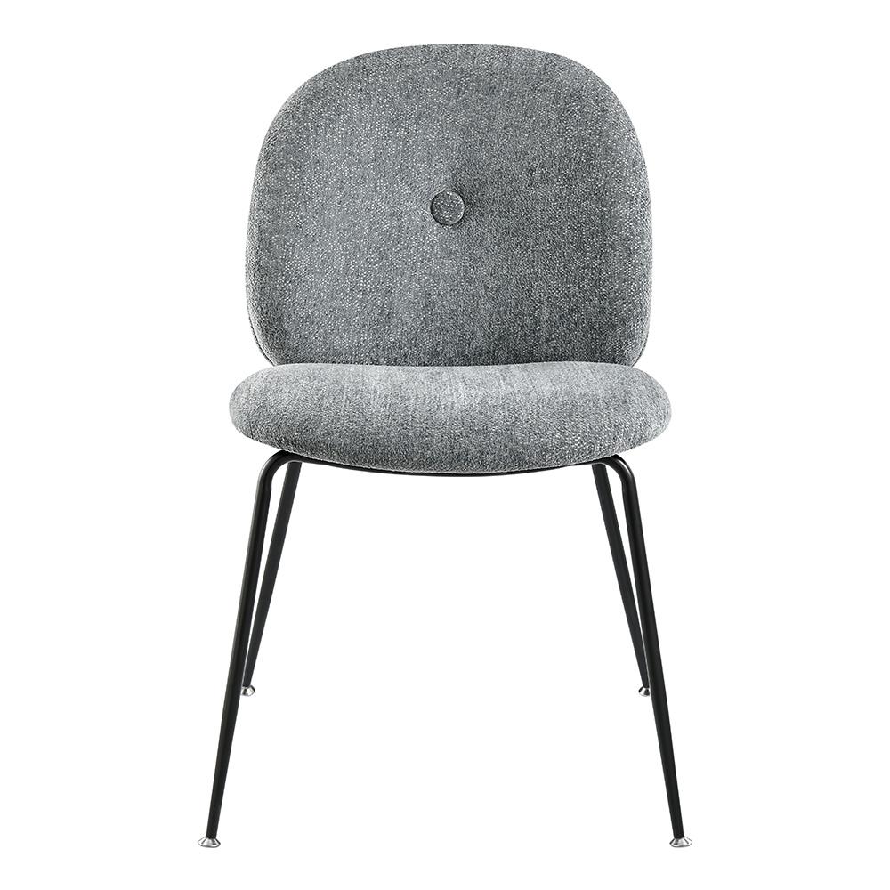 Charming & Playful vibe all around! -- its rounded profile and one button decor on the back seat instill a softness while the slim metal legs give it a sleek disposition. This chair is versatile and a nice solution to uplift any space. Easy Assembly. Available in Posh Gray and Posh Ivory.