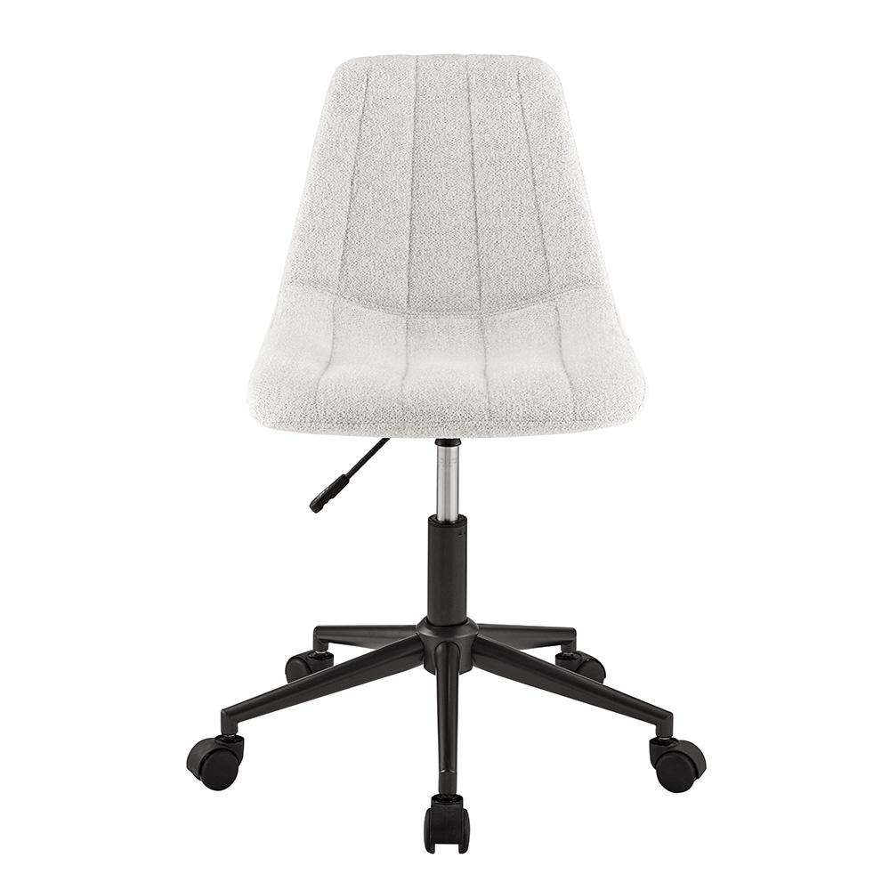 Modern Minimalist Task Chair - Comfortable for an all-day support for working at home or in the office environment. Fully padded back rest and seat feature channel tufting in chic polyester fabric. The 360-degree swivel seat adjusts between 17.5" - 21". Sleek powder coated steel frame with casters for easy mobility. Easy Assembly. Available in Posh Ivory and Umber Brown PU.